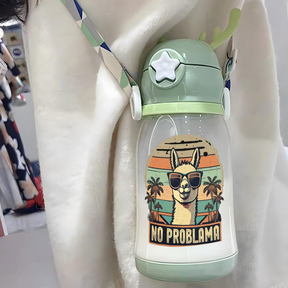 1pc, 20.29oz, Plastic Cup, Ostrich Pattern Wearing Fashion Glasses, Antler Water Cup, Plastic Bouncing Cup, Shoulder Strap, Water Bottle, Suitable for Outdoor, Sports, Fitness, Cycling Water Cup, Portable Straw Cup, Fruit Cup