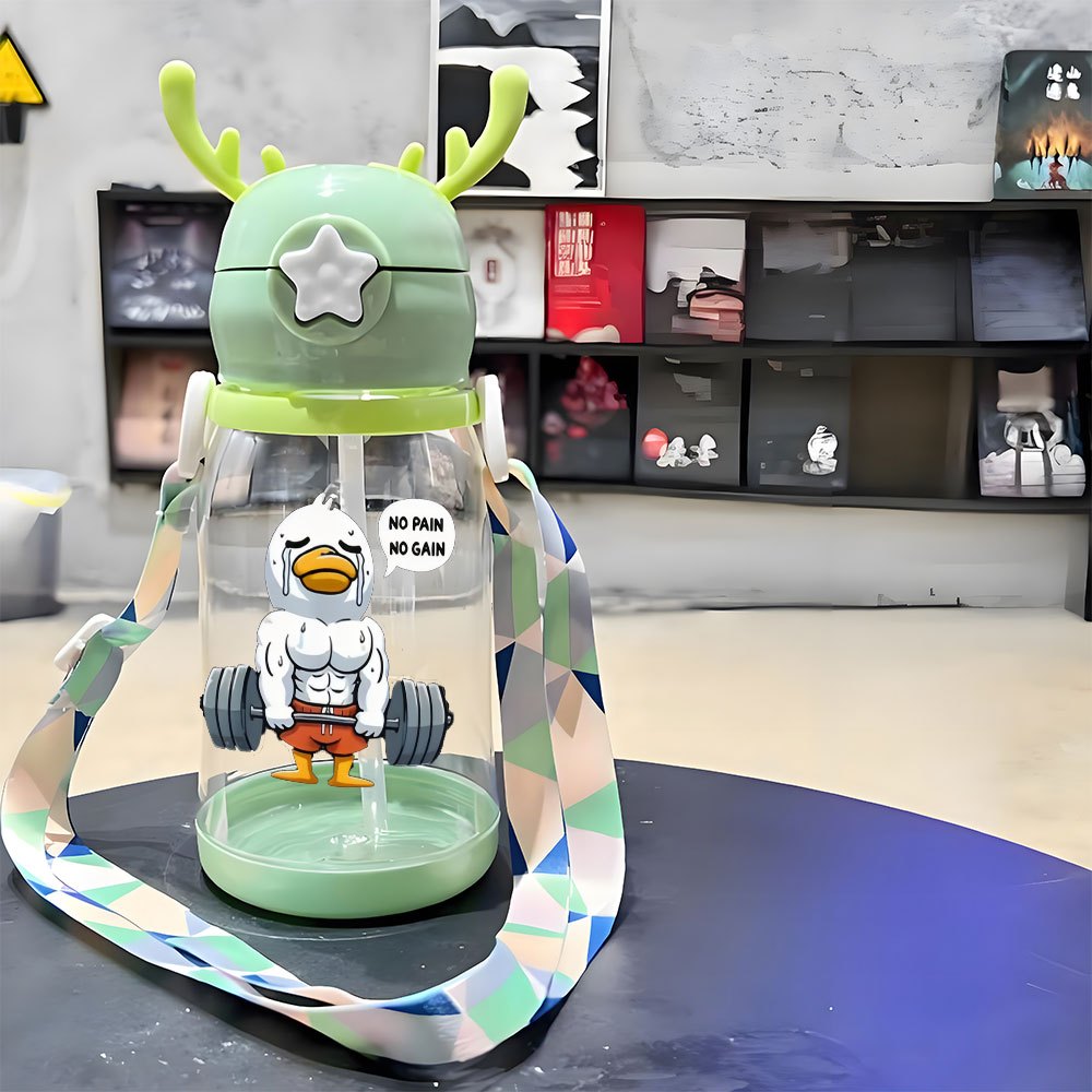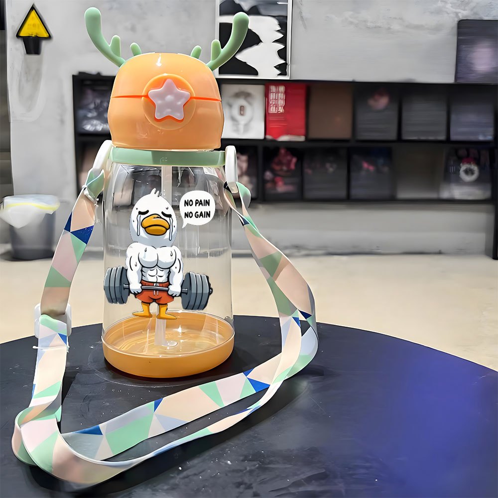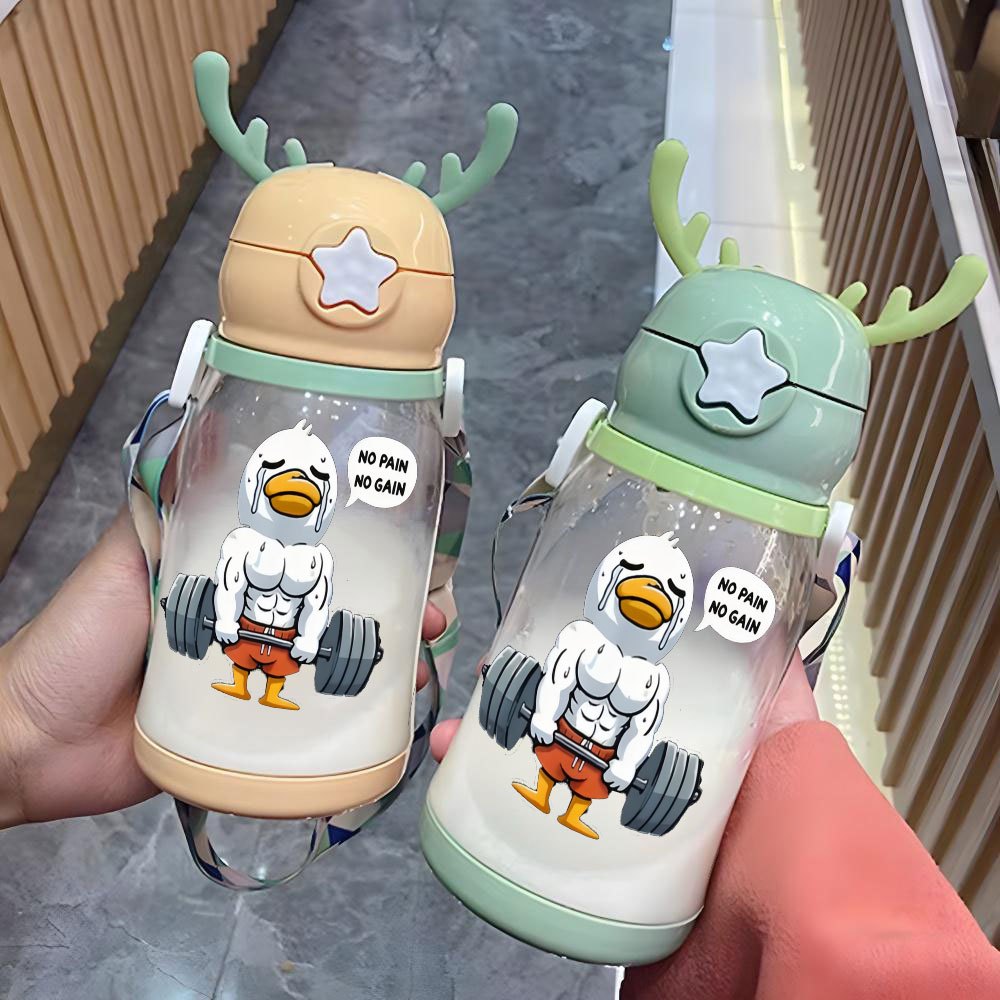 Christmas Thanksgiving 1pc, 20.29oz, Plastic Cup, Ducks Weeping in Fitness Designs, Antler Water Container, Plastic Bouncing Cup, Shoulder Strap, Water Bottle, Ideal for Outdoor Activities, Sports, Fitness, Cycling Water Container, Portable Straw Cup