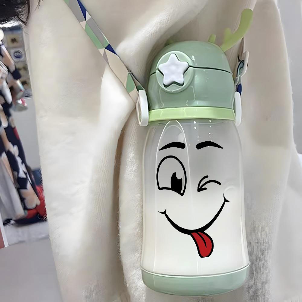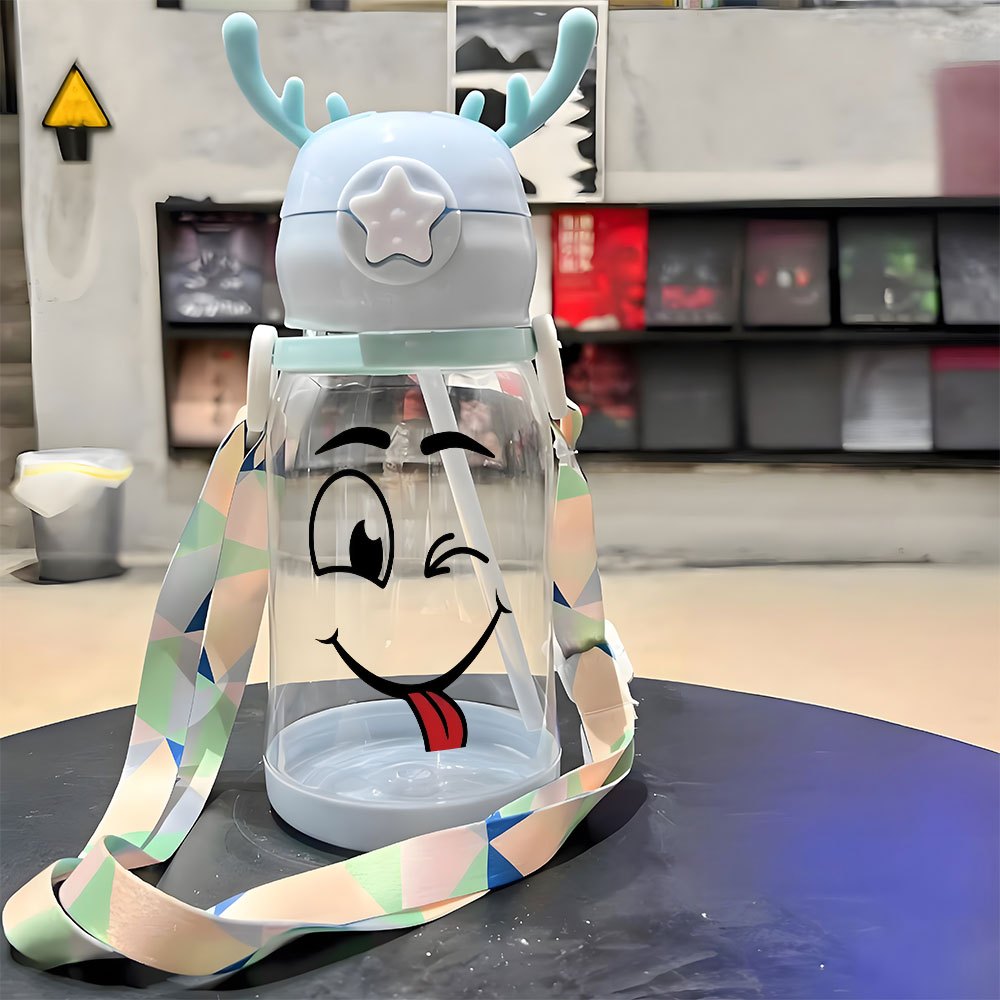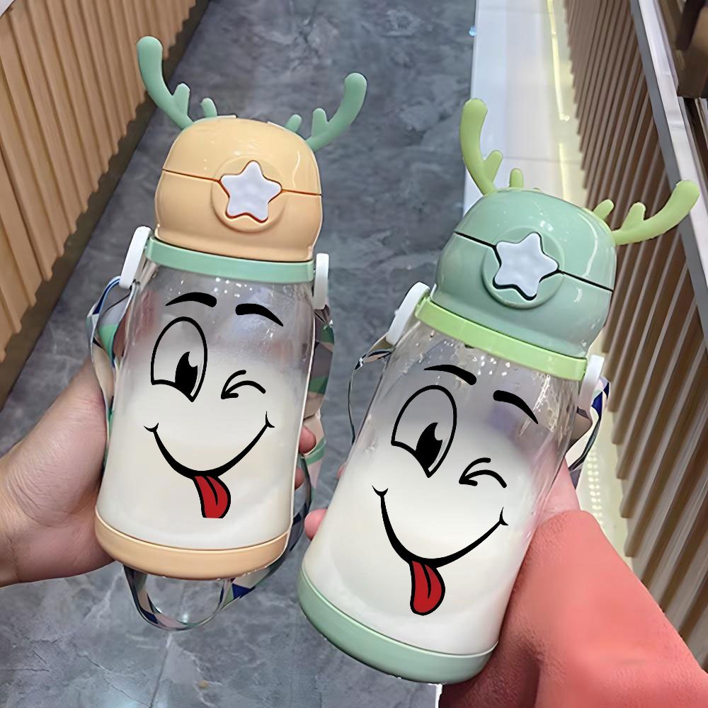 Christmas Thanksgiving 1pc, 20.29oz, Plastic Cup, Featuring a Playful Smiley Face Design, Antler Water Cup, Plastic Bouncing Cup, with Shoulder Strap, Water Bottle, Ideal for Outdoor Activities, Sports, Fitness, Cycling, Portable Straw Cup, Fruit Cup