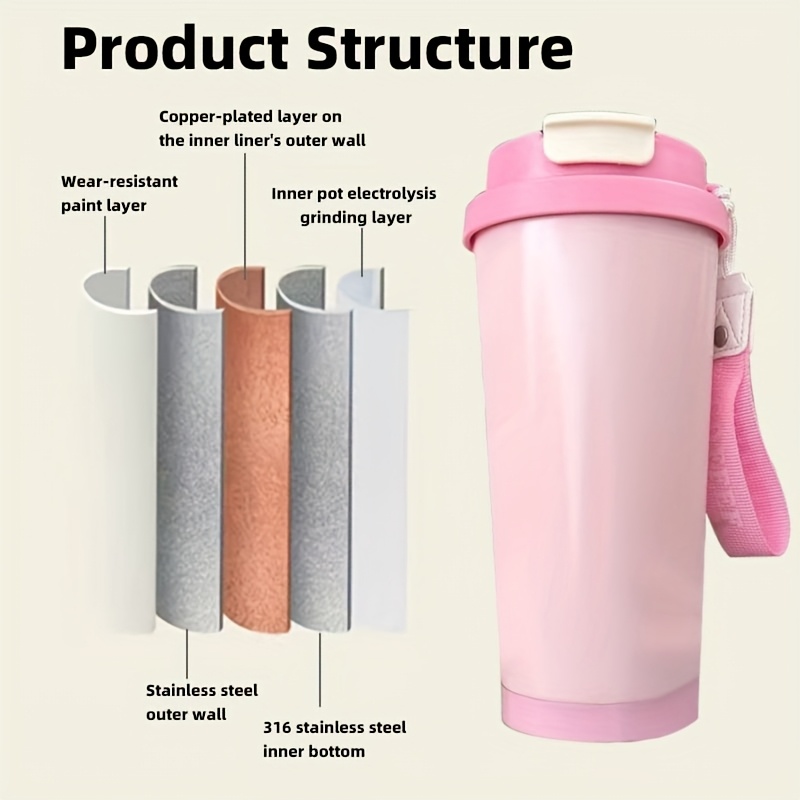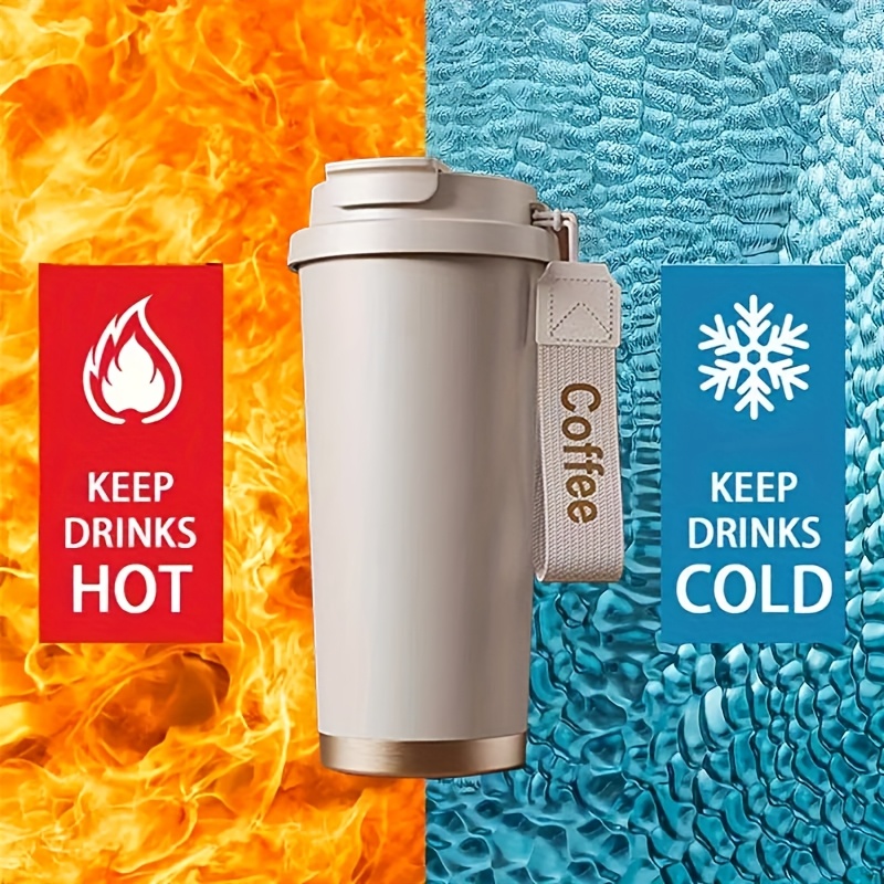 Portable Stainless Steel Coffee Mug, Keeps Hot Or Cold, 18Oz Capacity with And Straw, Suitable for Men And Women As A Handheld Water Bottle, Suitable for Gift Giving, Multifunctional, Durable, Unique